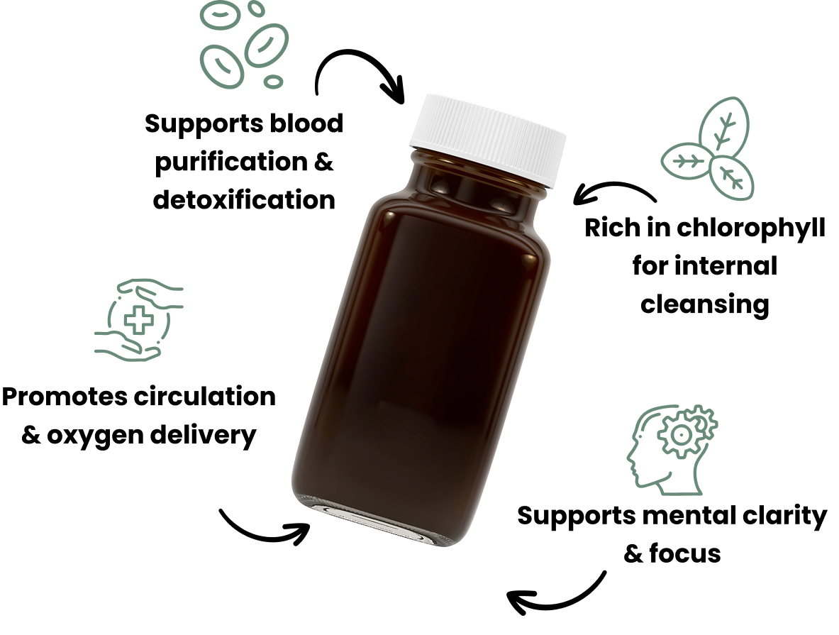 This booster is a natural deodorizer. It helps remove toxins from the blood while providing you with an overload of blood enhancing nutrients.