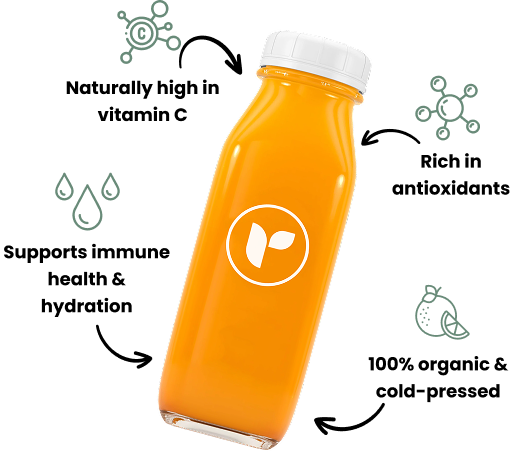 Hand pressed locally using 100% organic oranges. No preservatives or HPP. The cold-pressed method allows us to extract even the most difficult to reach nutrients trapped in the skin of the orange. This juice is packed with natural Vitamin C & powerful antioxidants.